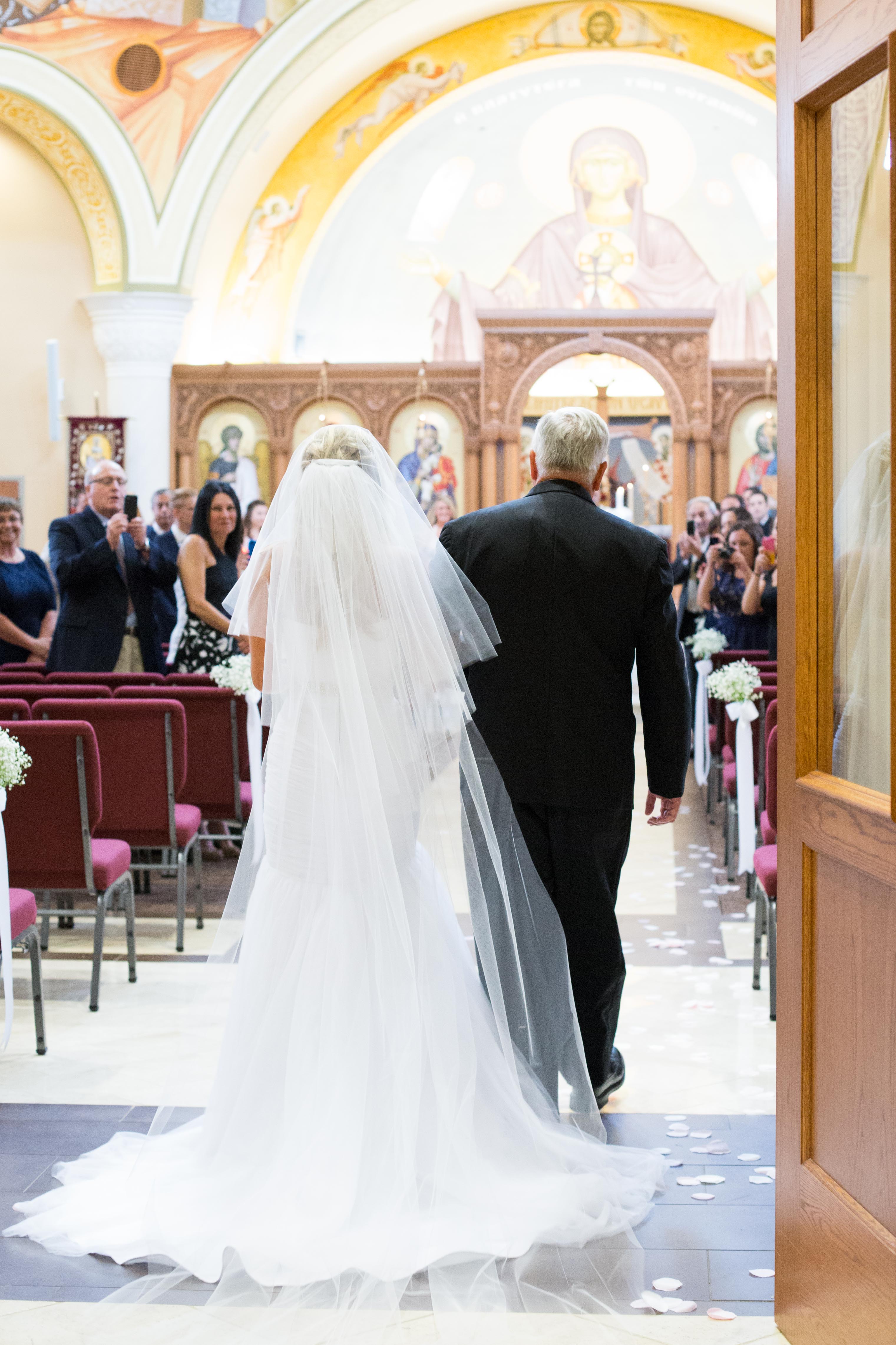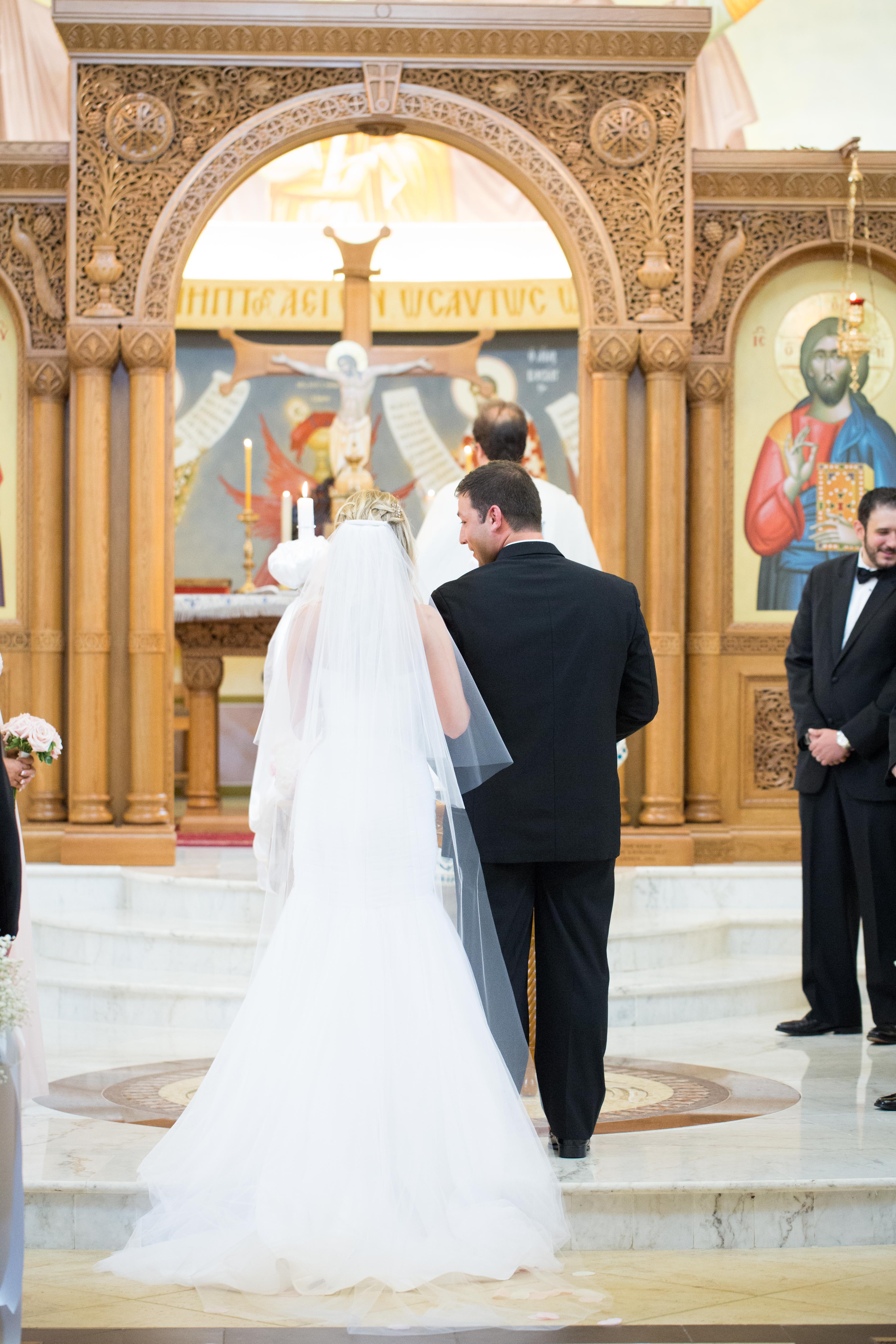 Once everyone was ready and looking good we headed to St. Sophia Greek Orthodox Church. We had never been there before but wow was it breathtaking. The church sanctuary was gorgeous from the large dome ceiling to all the intricate paintings. As Courtney made her way down the isle in her fathers arm Dimitri had a smile from ear to ear. Once announced husband and wife the guests erupted with excitement for the two of them.