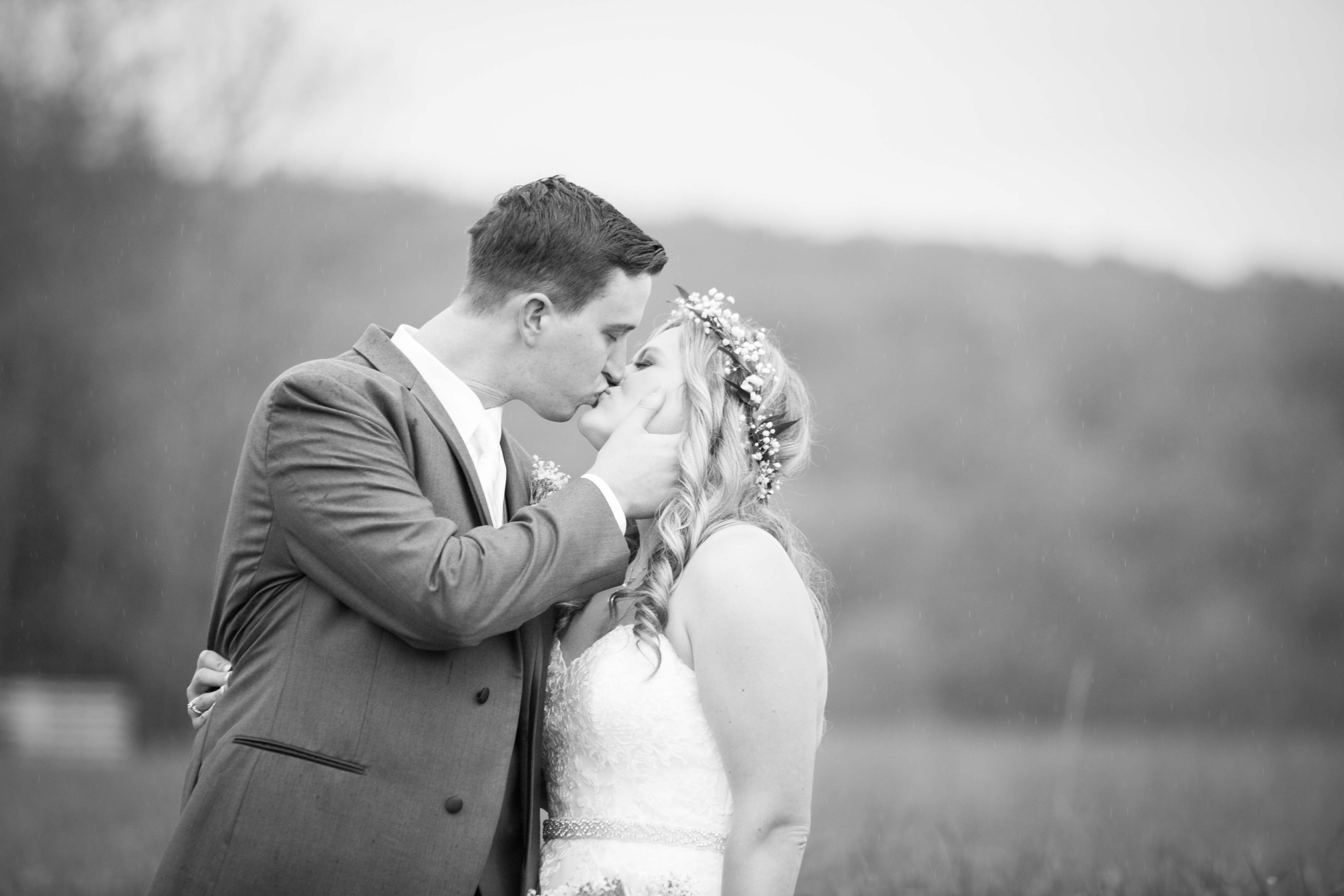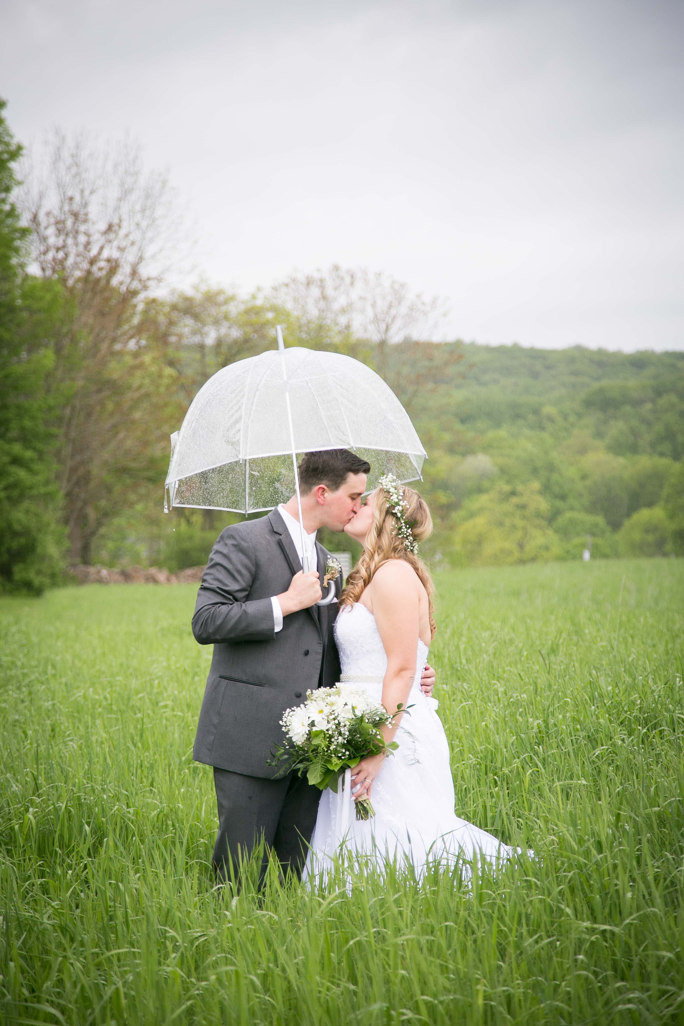 Their day started out in the bridal suit at Bally Spring Inn. The room was gorgeous, light and airy! Everything a photographer would dream. The day however came with it’s own unique challenges with the weather. The rain held off for the first half of the morning but the second the ceremony started it came pouring down. After the ceremony Ash and Tim lived by their motto, “Rain is a good thing”. We explored the grounds with the two of them and their umbrella. The reception was beautiful as always! Every detail had a touch of Ash and Tim from the flowers to the guests signing the guitar that Tim proposed with, and the jars of jam from their favorite place. The DJ, Cannon Entertainment Service, kept the party rocking with their favorite country music as the guests danced all night. As the night came to a close we took them outside for some beautiful, rainy night shots.