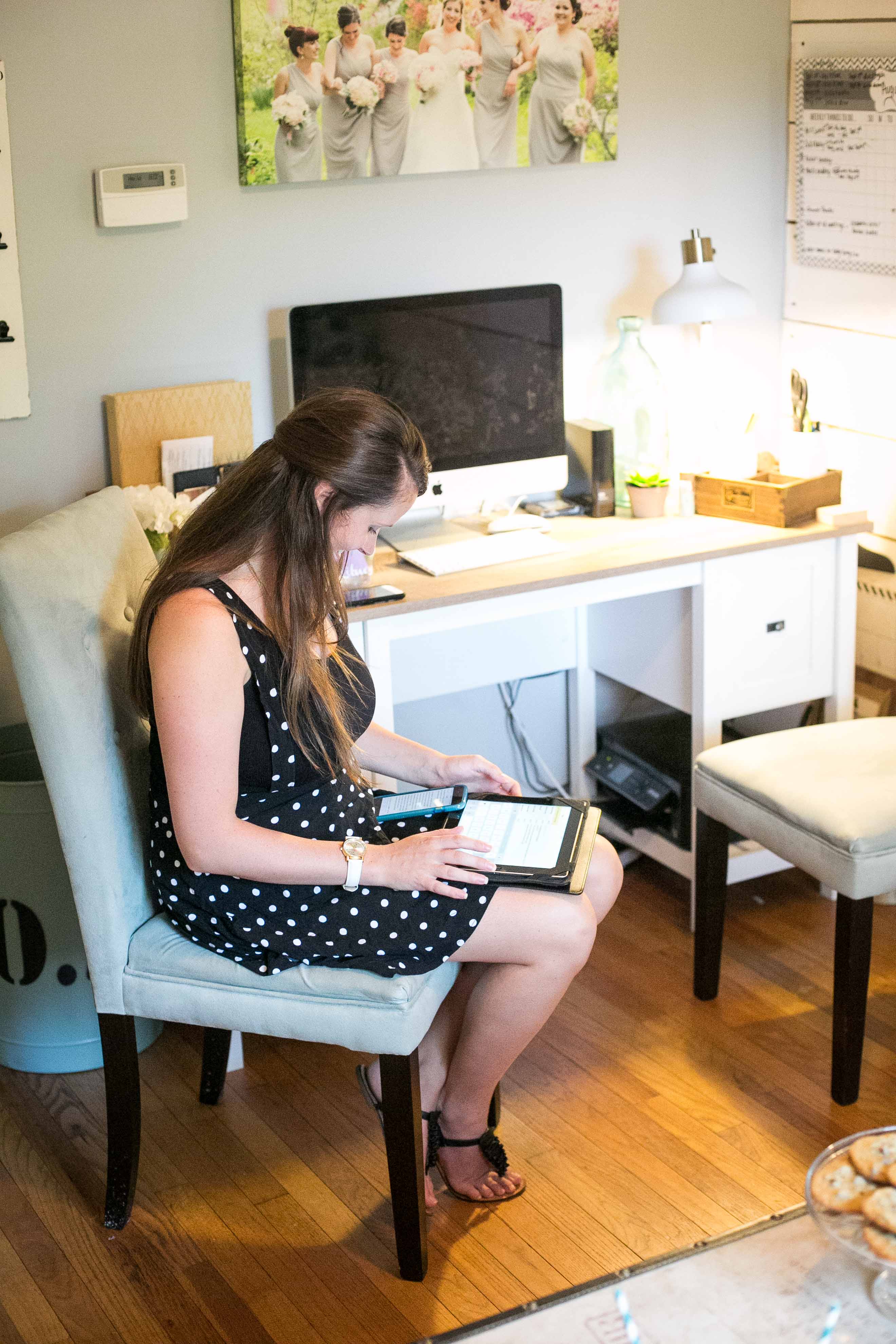 We had a more typical day on Tuesday. We spent the morning and afternoon working in our office. The pacifier was the definition of Skyler a lot this week. She was super fussy and the second the pacifier fell out she was red face and tears pouring out of her eyes. Poor things belly hurt her a lot. Skyler has acid reflux which seems to act up on random days and makes her feel terrible. We are praying she will grow out of it! We have a mirror in the hallway by our bedrooms and we continually place her in front and up until this week she didn’t take too much time to look at it but this week she finally noticed herself! She was super confused and then the smiles came out.  We were also able to order some new photography equipment! We have one 70-200mm lens already but we fought over who got to use it during weddings so we finally bought another one. Let’s just say I’m super excited to use it!