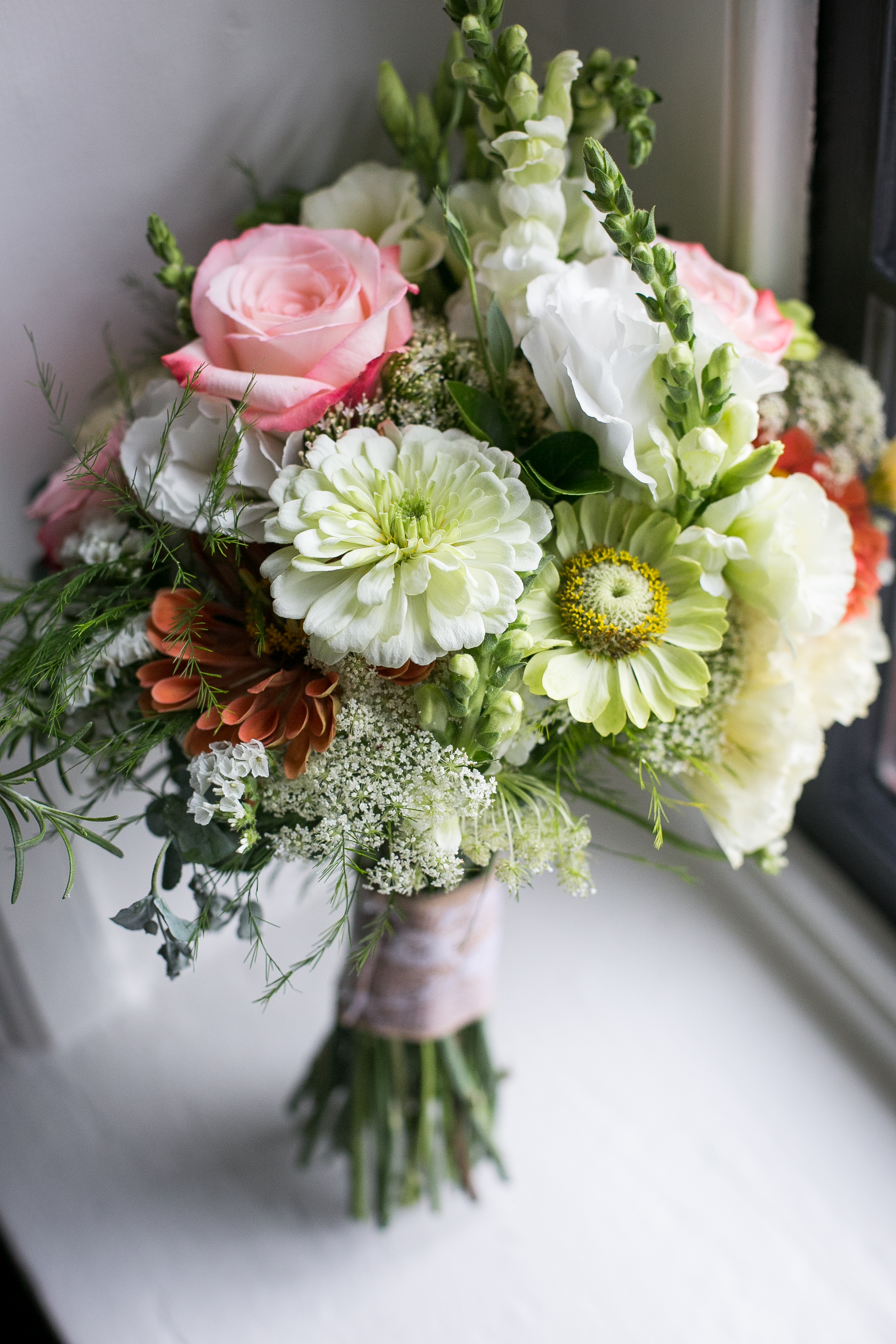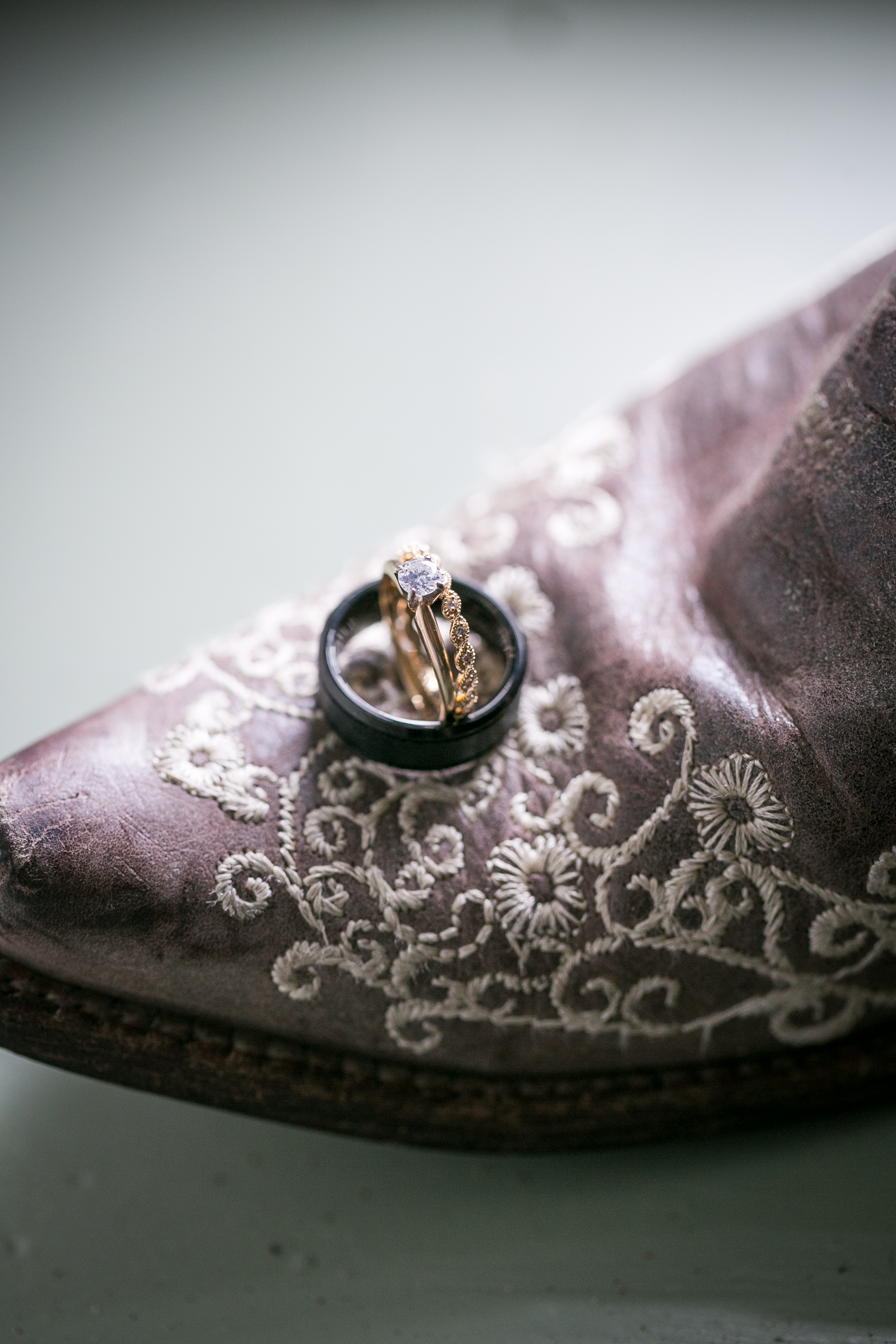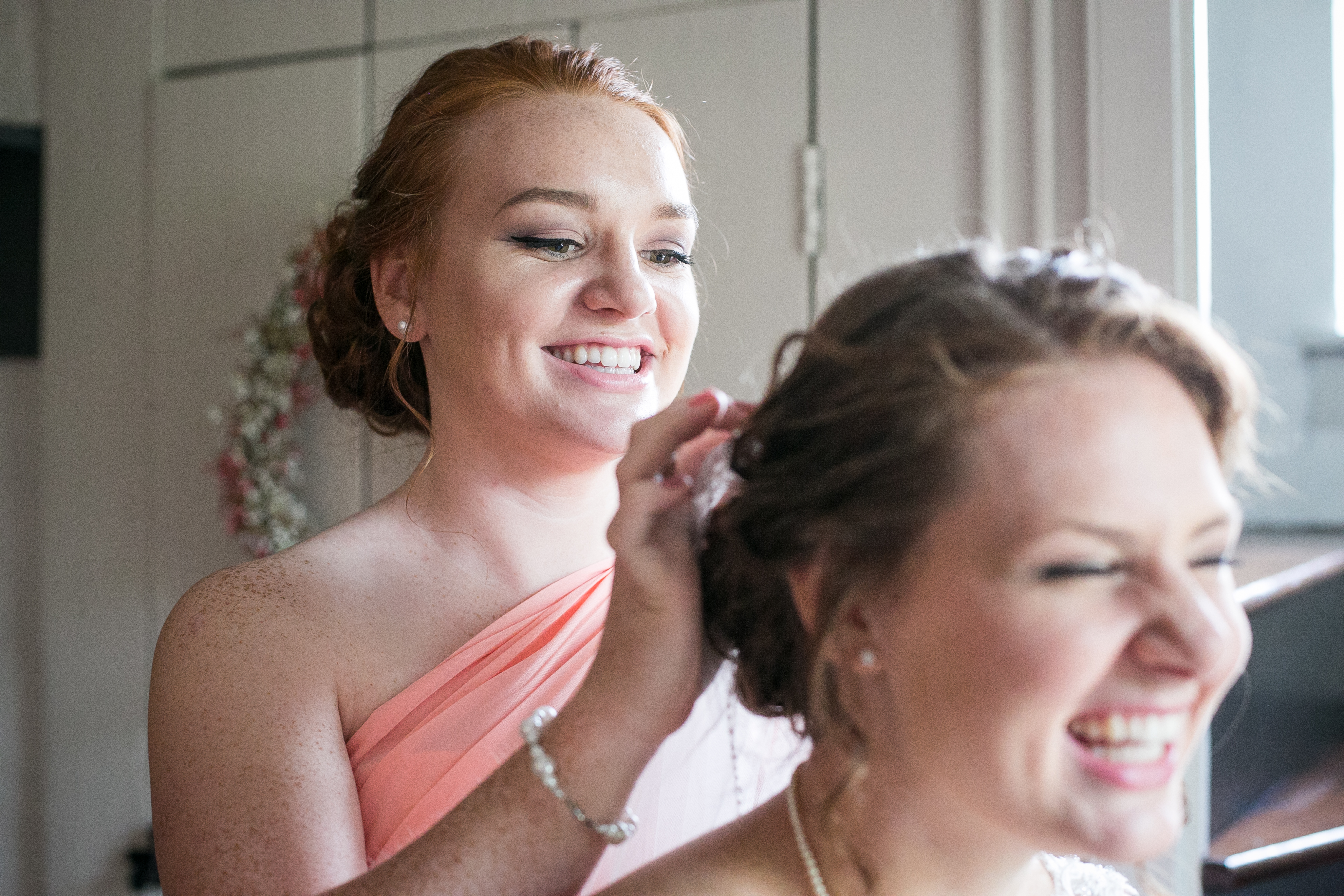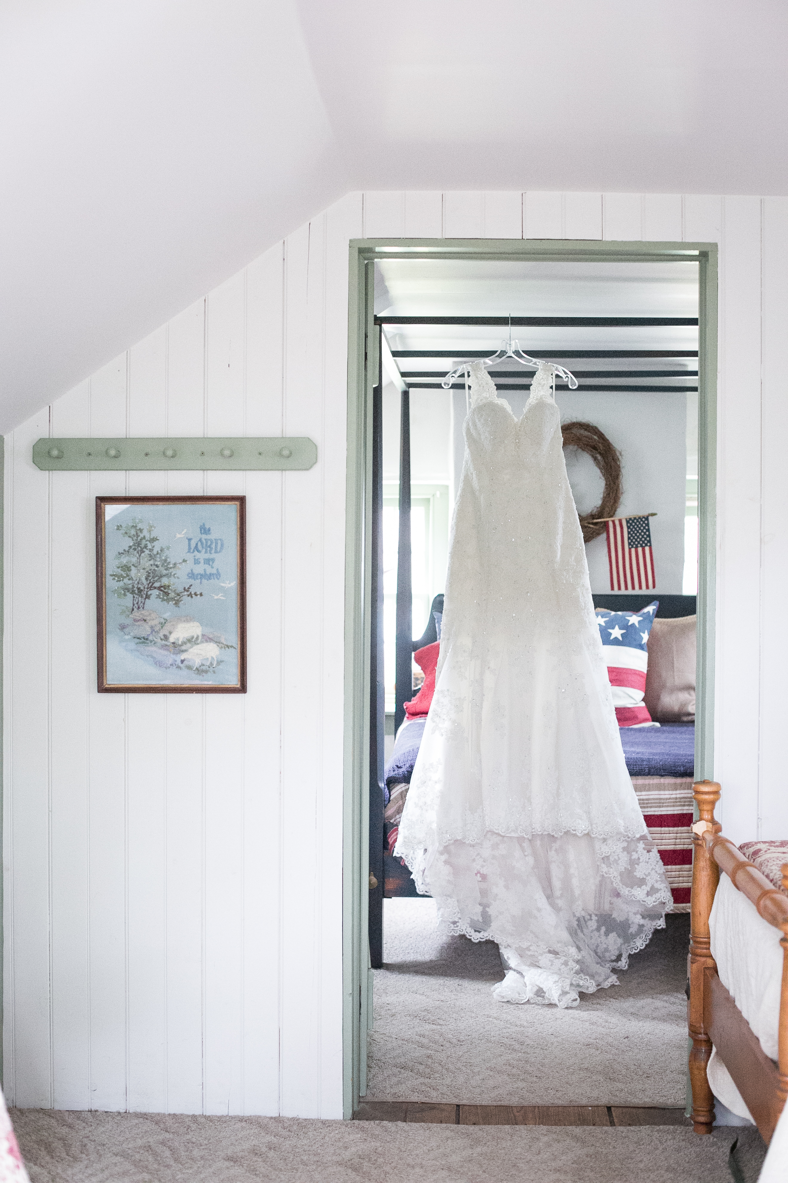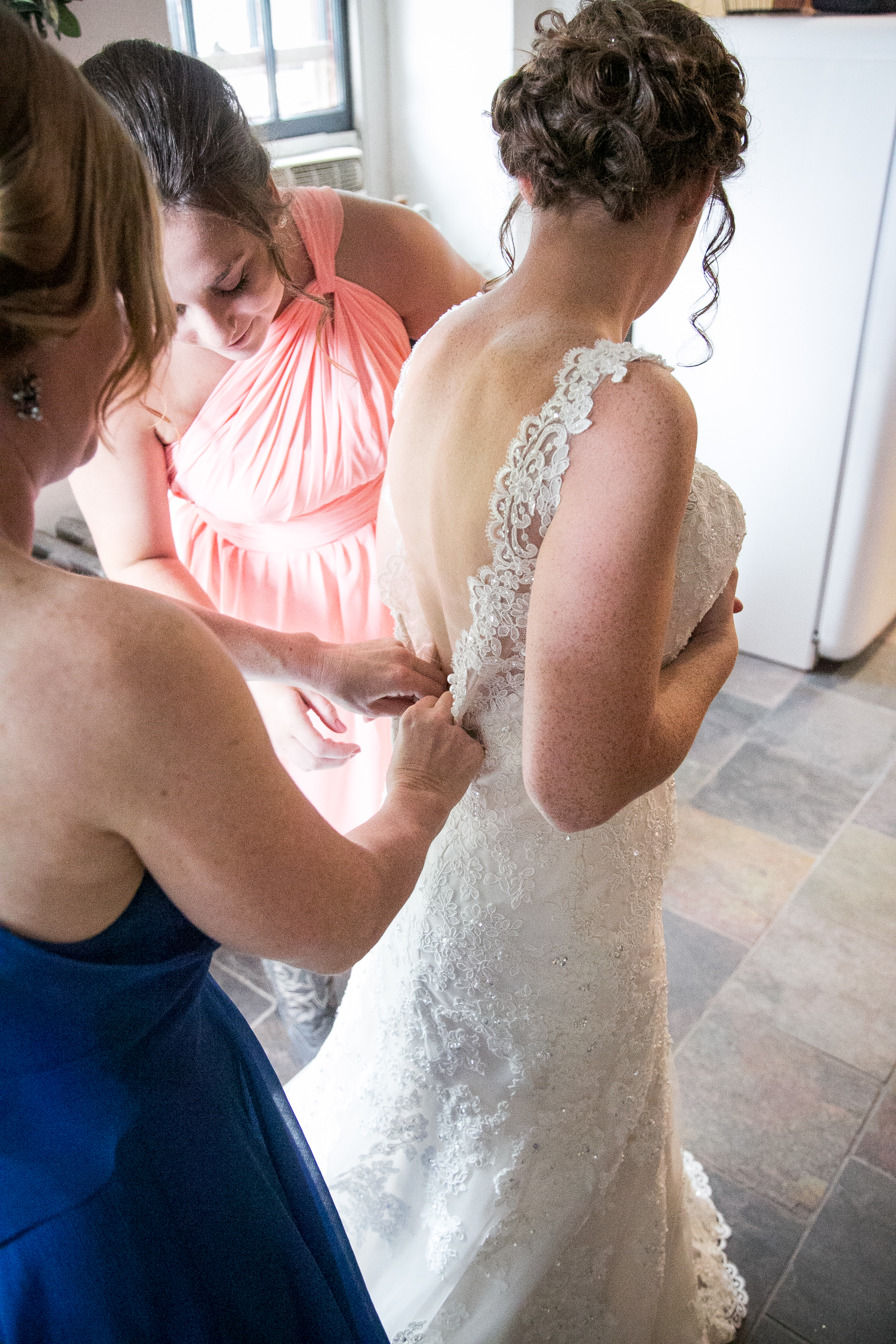 The morning started with the girls in a beautiful bridal house. Emiline looked stunning in her dress and we took full advantage of all the window light in the house. It rained off and on so when we had a break in the rain we were able to take advantage of the beautiful property and get some photos outside. The ceremony was planed to be in the pasture and about a half hour before things were to get started a heavy rain rolled in.  Even with the rain Chris and Emiline were not going to let that change their plans. They decided to move a large white tent over top of the ceremony site and kept everything to plan. After the ceremony there was a brief break in the rain so we explored the property a bit.