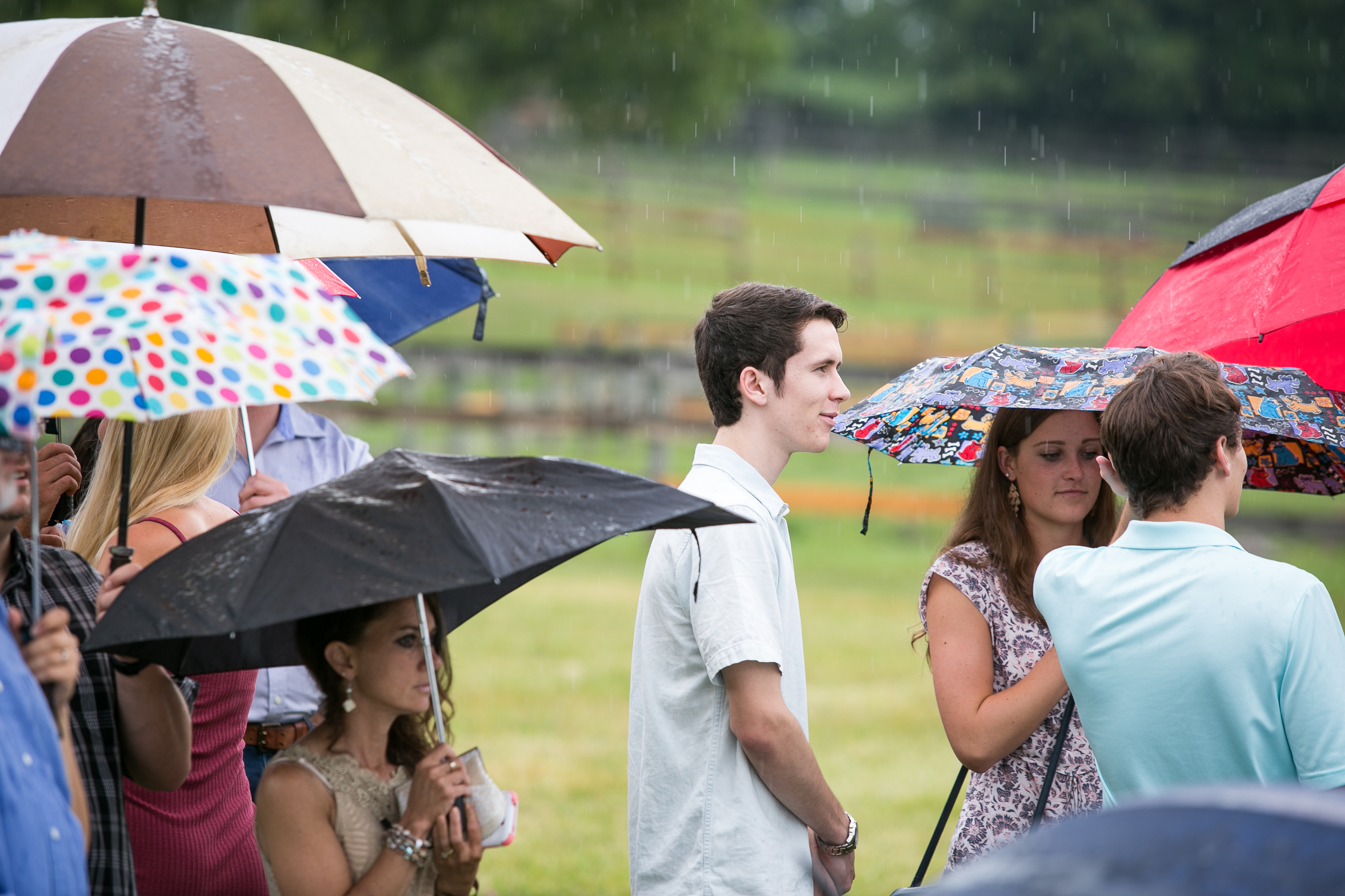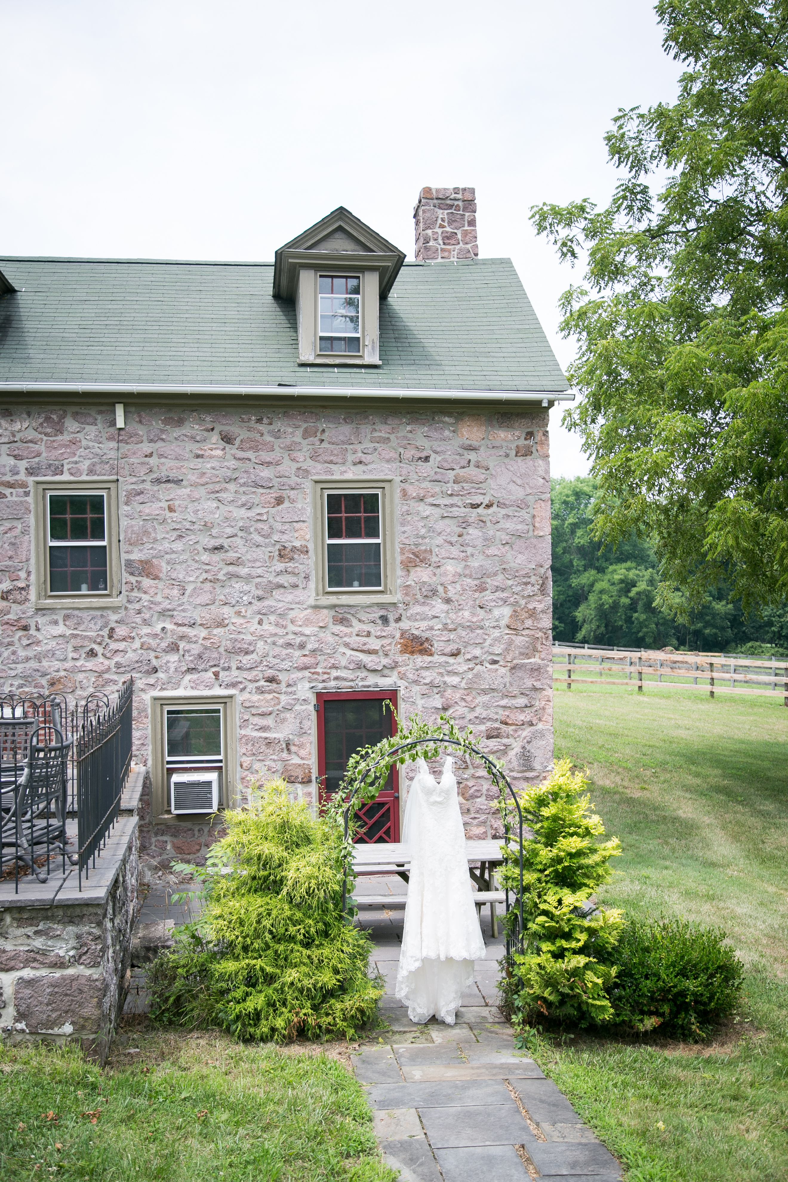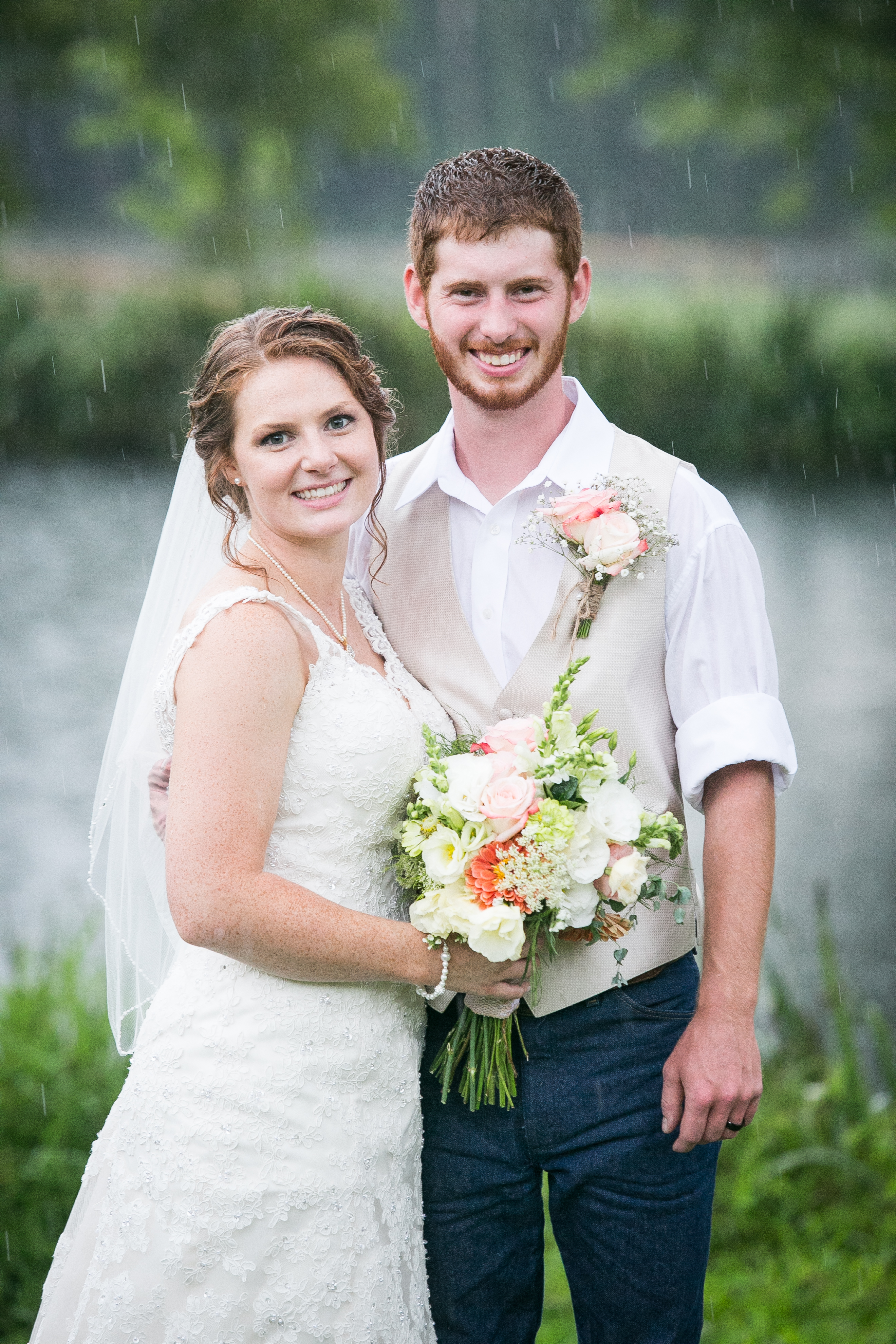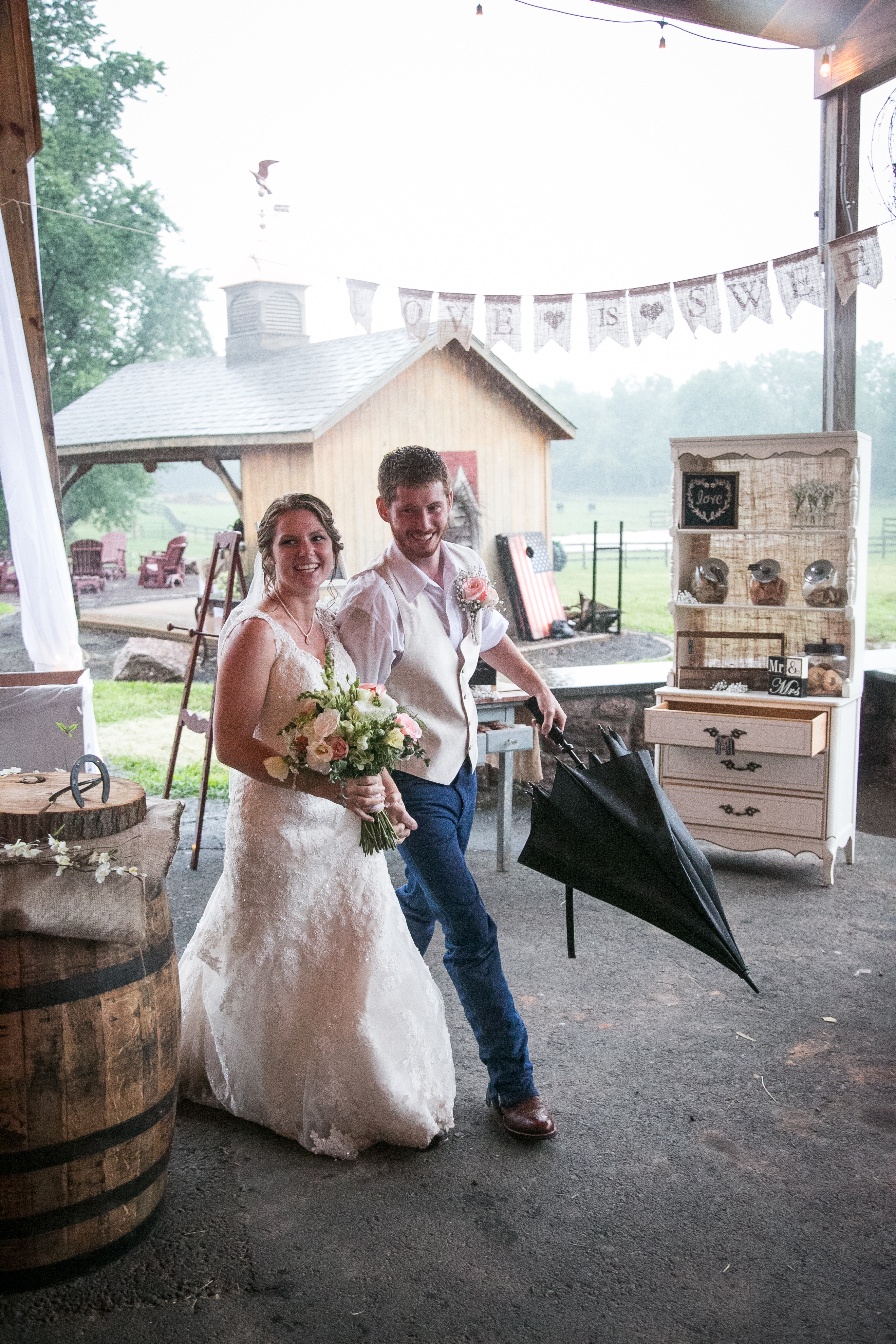 When I woke up the morning of this wedding and I looked at the weather and it was calling for rain. I didn’t realize that on this day “Rain” actually meant complete downpour! No bride or groom wants rain on their wedding day but this couple made the day an absolute blast. There is nothing better than having a wedding on a farm. The Spring Hill Farm had it all! A beautiful property with a pond, pastures, stone houses and a big red barn! Â