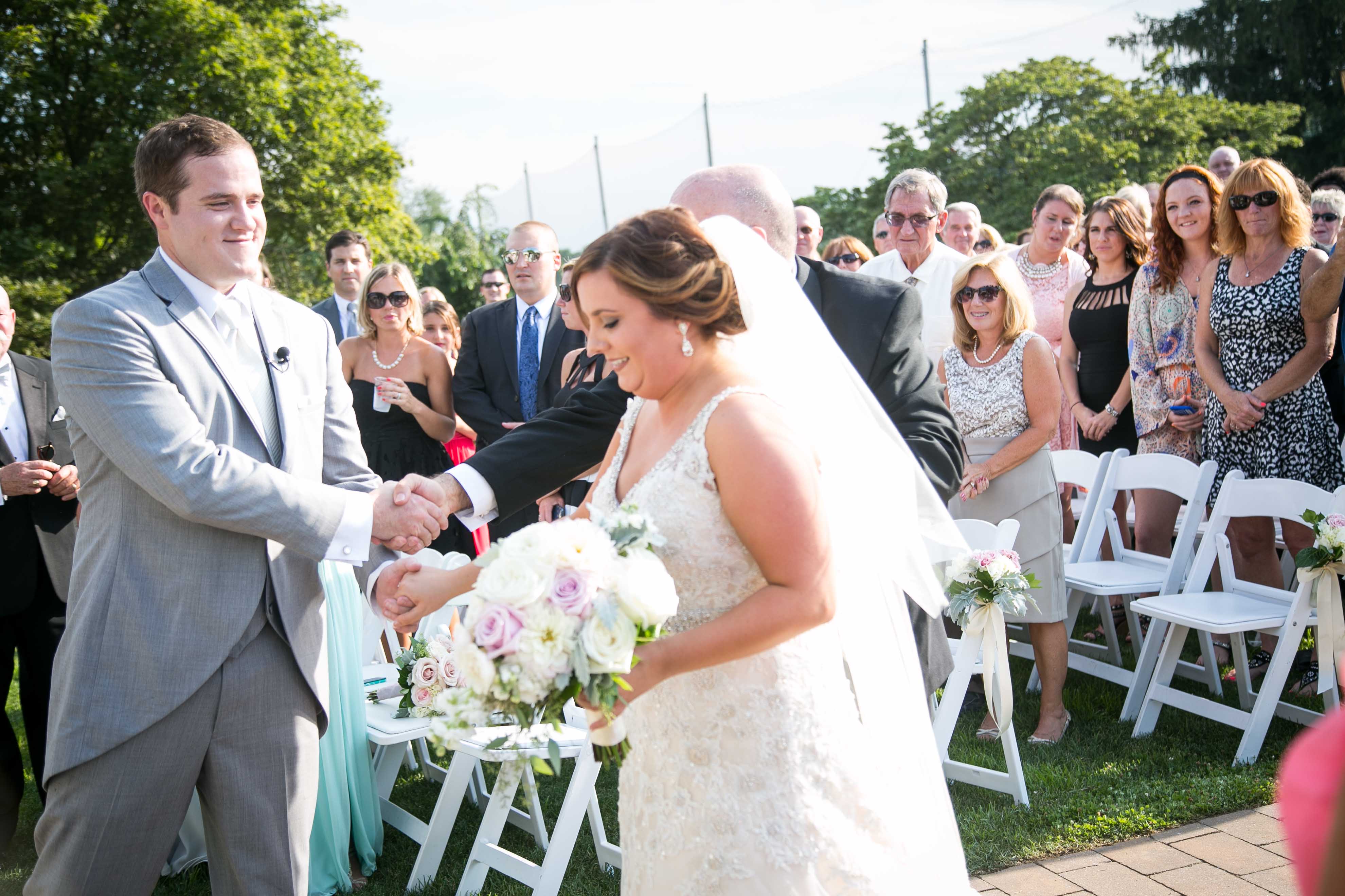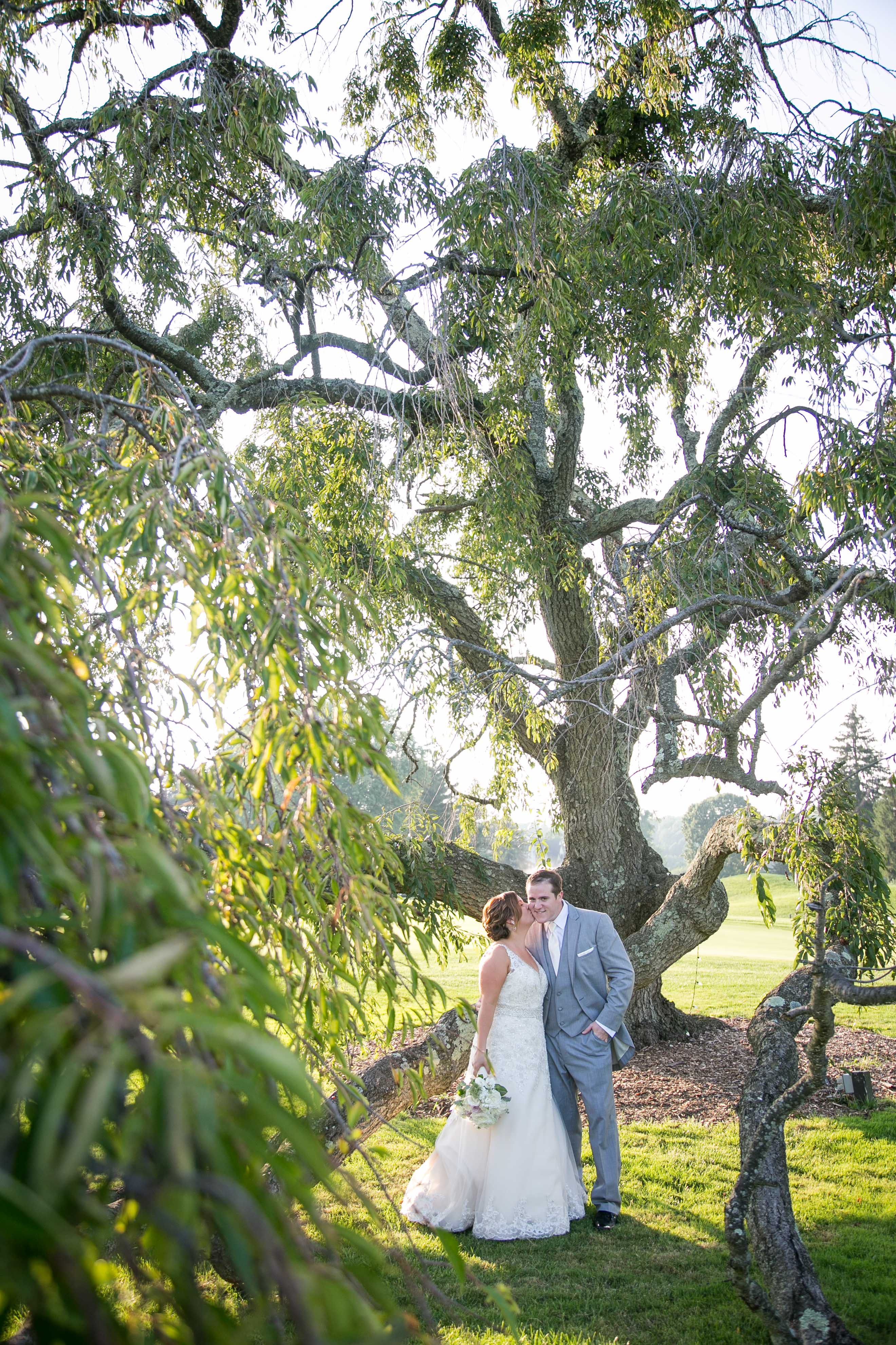 I’ve been friends with Bri since the 5th grade! Her and Justin have been dating since high school so this wedding has been highly anticipated!  Bri is goofy, funny and loves entertaining people. Justin is more calm but he compliments Bri so well! Justin loves golf so when it came to picking a venue Penn Oaks Golf Club  was the perfect choice for them! The ladies got ready in the bridal suite with Bri’s 3 adorable second cousins running and playing all round them. It was an emotional morning when Bri was revealed to her closest friends and family memebers.  Meanwhile the men got ready over at a hotel and they tried to see how many guys they could fit into one bathroom while working on Justin’s hair. Bri and Justin said I do under the pavilion with all of their loved ones cheering them on! The night was filled with delicious food, drinks, music and dancing! The speeches were heart warming and the game Bri’s dad had set up had everyone laughing! It was a beautiful day celebrating two amazing people! Bri and Justin I hope you both have an amazing marriage!