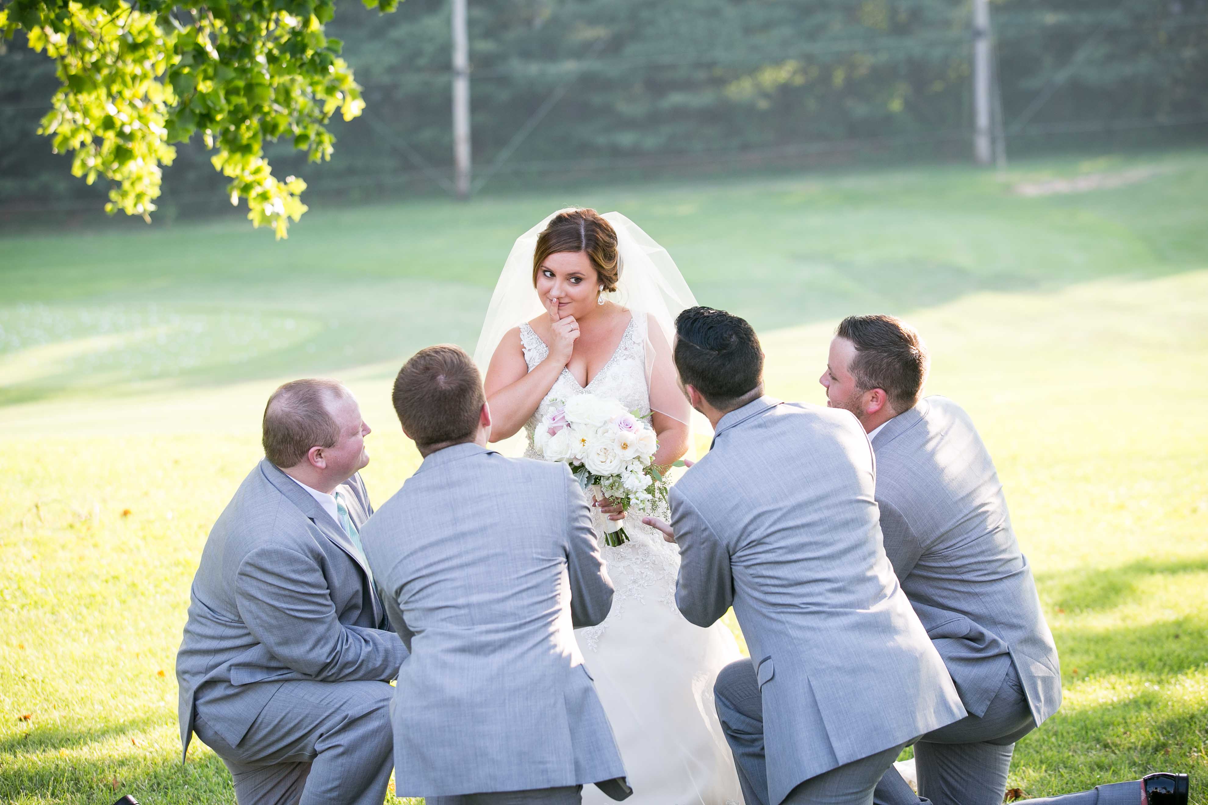 I’ve been friends with Bri since the 5th grade! Her and Justin have been dating since high school so this wedding has been highly anticipated!  Bri is goofy, funny and loves entertaining people. Justin is more calm but he compliments Bri so well! Justin loves golf so when it came to picking a venue Penn Oaks Golf Club  was the perfect choice for them! The ladies got ready in the bridal suite with Bri’s 3 adorable second cousins running and playing all round them. It was an emotional morning when Bri was revealed to her closest friends and family memebers.  Meanwhile the men got ready over at a hotel and they tried to see how many guys they could fit into one bathroom while working on Justin’s hair. Bri and Justin said I do under the pavilion with all of their loved ones cheering them on! The night was filled with delicious food, drinks, music and dancing! The speeches were heart warming and the game Bri’s dad had set up had everyone laughing! It was a beautiful day celebrating two amazing people! Bri and Justin I hope you both have an amazing marriage!