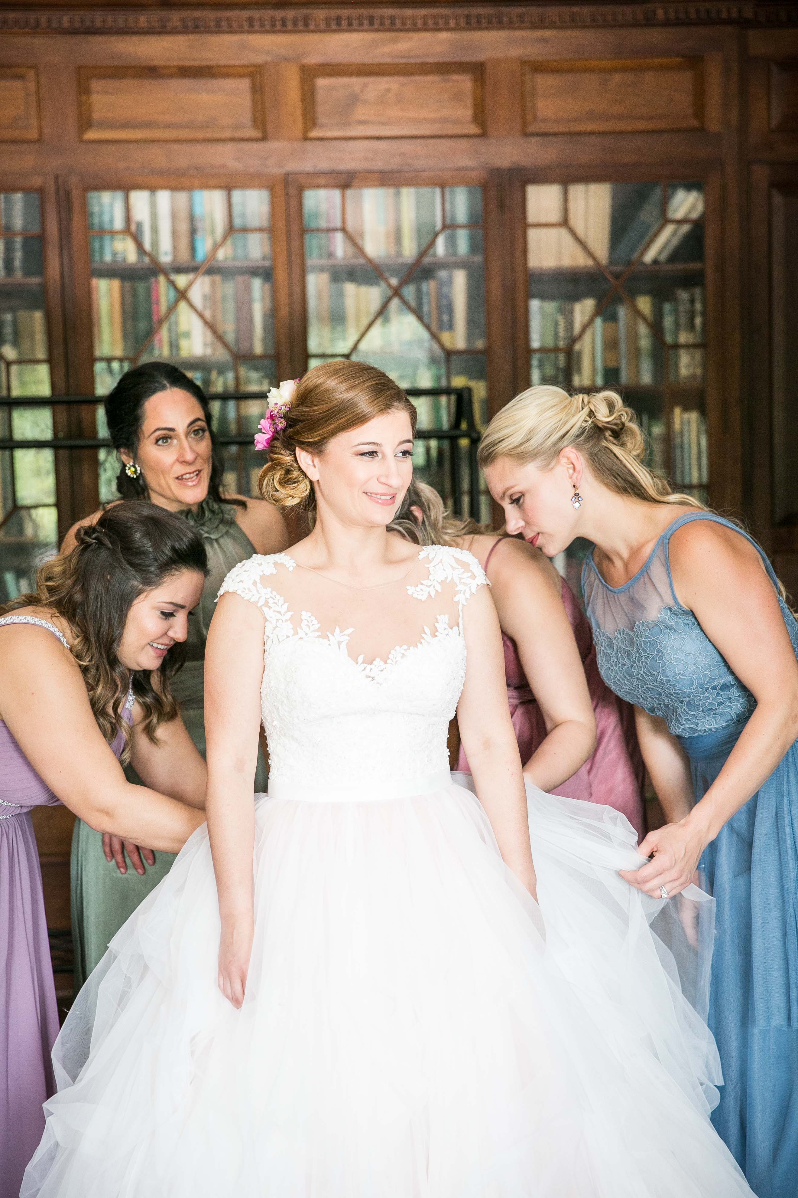 Bridesmaids Attire: Jasmine Belsoie and Bill Levkoff